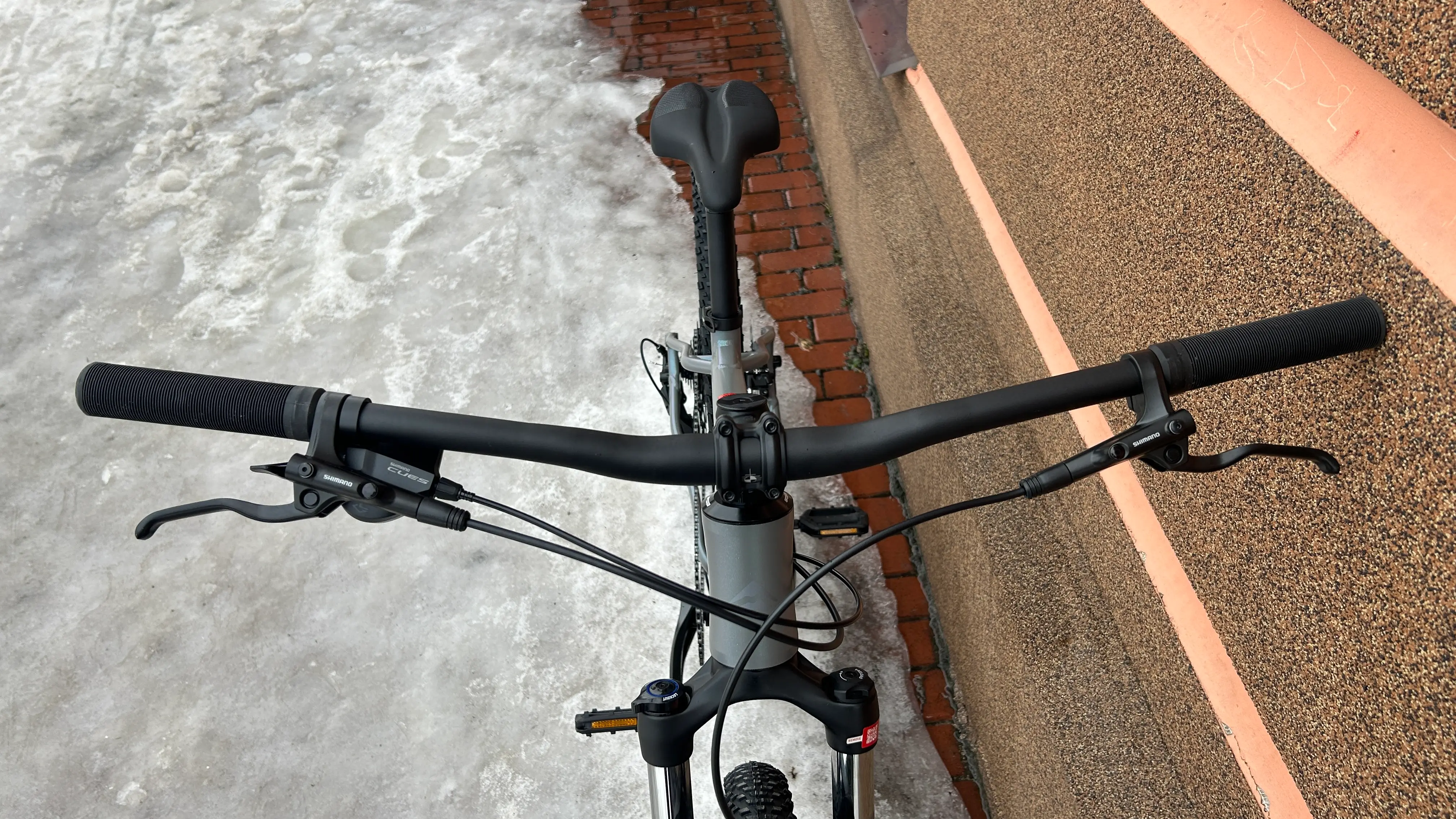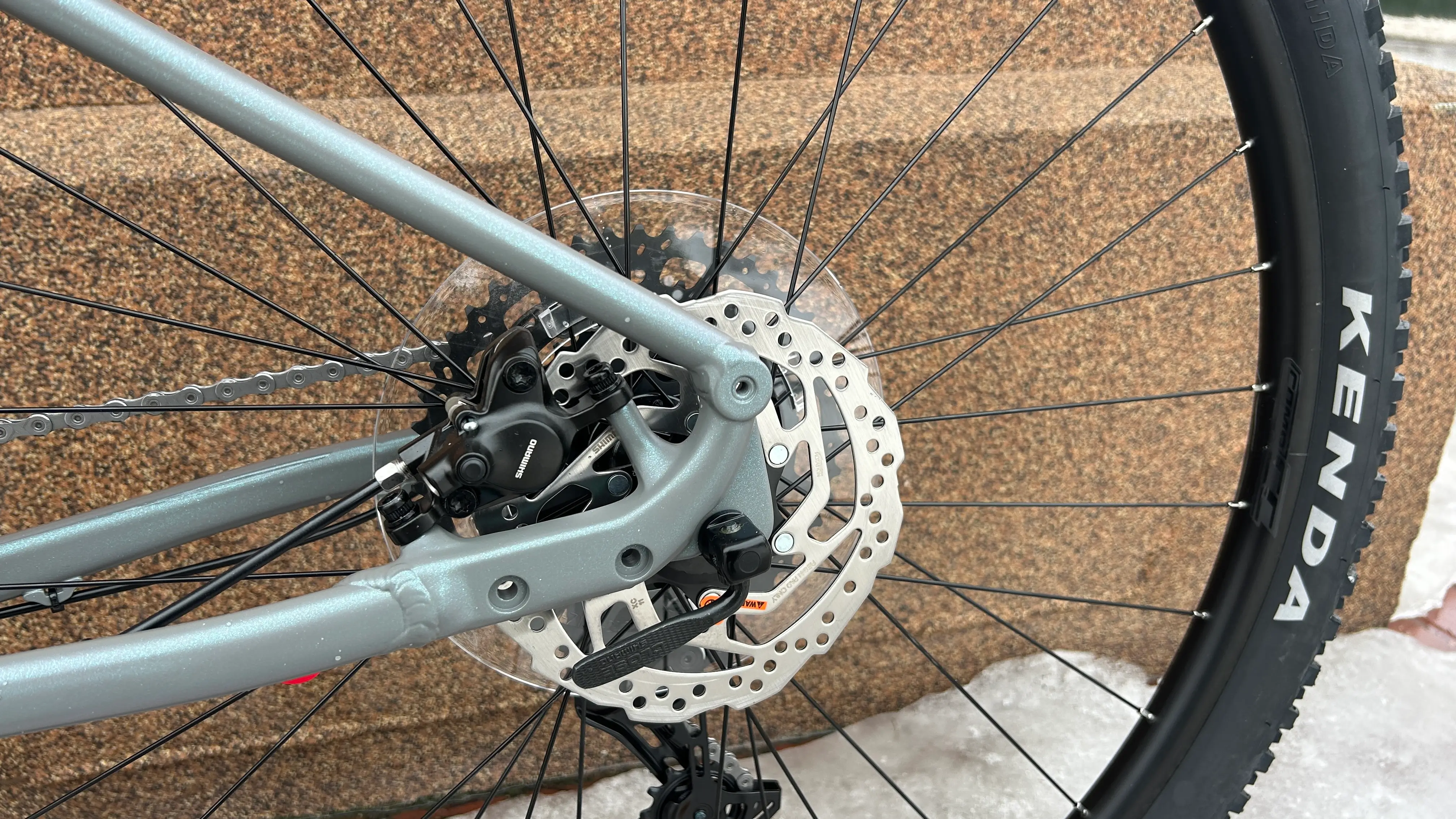 Тормозная система представлена гидравлическими дисковыми тормозами Shimano MT200 с роторами диаметром 160 мм спереди и сзади, гарантирующими надежное торможение при любых условиях.