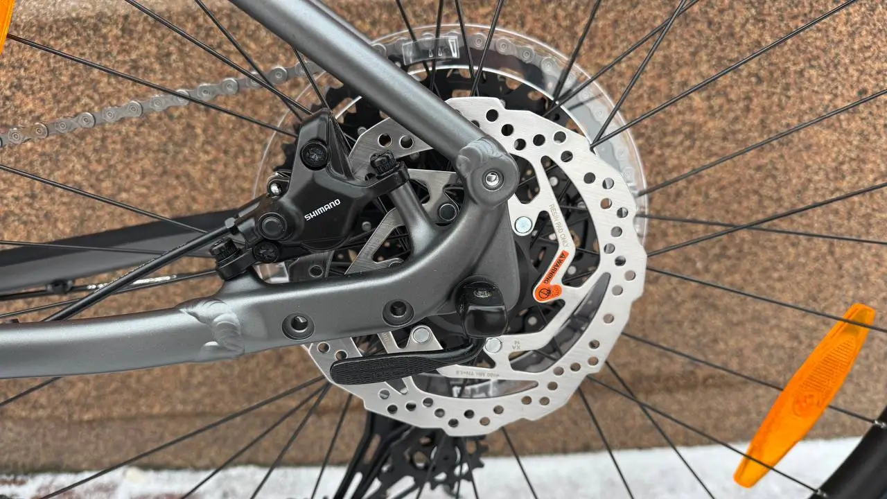 Гідравлічні дискові гальма Shimano M4100 з роторами 180 мм спереду та 160 мм ззаду гарантують потужне та стабільне гальмування у будь-яких умовах.