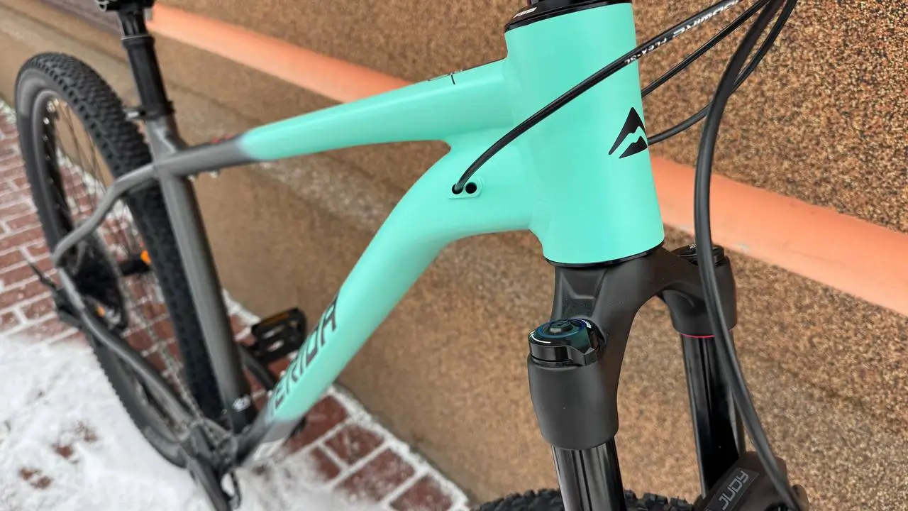 Легка алюмінієва рама BIG.NINE TFS V з акуратними зварними швами та повітряна вилка RockShox Judy Gold RL з ходом 120 мм та можливістю блокування забезпечують відмінне згладжування нерівностей та контроль на трасі.